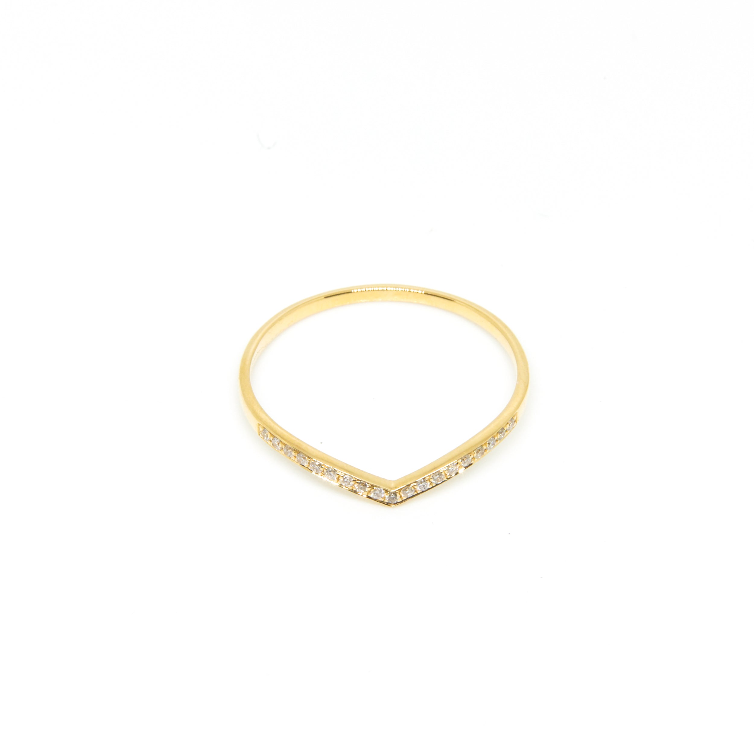 Crafted from 18-karat yellow gold and surrounded 19 pcs of sparkling diamonds, the Chevron Diamond Ring is a modern choice for an engagement or a wedding - or just as a gift to yourself. This ring can be worn on its own or incorporated into your stacking story.